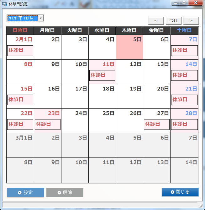 2026年2月: 2月の日曜診療は8日です。 2/20日(金)はWEB予約のみです。 2/27日(金)は休診いたします。